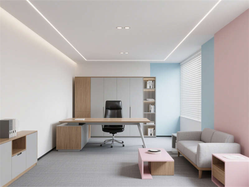 开放办公区注重通透感与实用性,合理的工位布局兼顾隐私与交流,原木纹桌面增添温馨感,点缀的莫兰迪色系线条让空间更显灵动。经理办公室融合办公与接待功能,皮质办公椅与木质家具提升质感,靠窗的休闲角落为办公之余提供放松空间。?