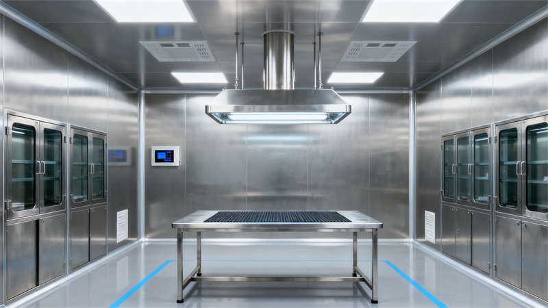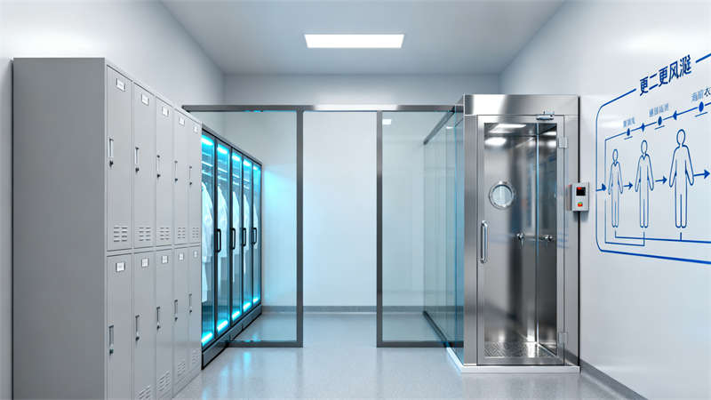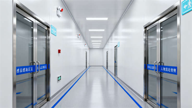室内空间围绕医疗器械生产需求展开,各区域设计既适配功能,又保持视觉统一。无菌组装区域选用无缝洁净材质,避免积尘残留,保障生产环境;精密检测区侧重隔音与光线控制,为检测工作营造低干扰氛围;原料仓储区以规整的货架布局,适配物料存放需求;研发实验室设置岛式实验台与通风柜,兼顾实验操作与中试功能;洁净走廊通过指引设计明确人流物流方向,确保流程有序;无菌更衣区按洁净流程分区,实现人员洁净过渡;中控室以核心监控设备为中心,方便实时掌握厂房运行状态。