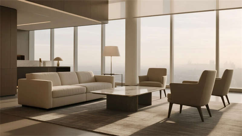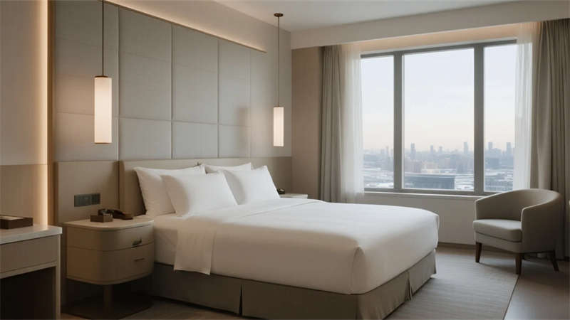 空间布局开阔通透,巨大的落地窗将自然光引入室内,与精心设计的隐藏式灯光系统共同营造出温暖而富有层次的光影氛围。从大堂的恢弘大气到客房的静谧温馨,每一处细节都旨在为旅客提供一种沉浸式的、回归本真的休憩体验。整体设计强调人与空间的情感连接,在简约中蕴含深度,于现代中流露温润,成就了一处城市中可呼吸、可感知的诗意栖居地。