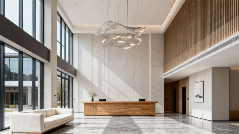进入室内,大堂区域宽敞明亮,浅灰与米白的主色调营造出干净清爽的氛围,搭配原木色元素增添温馨感,合理的空间布局让动线清晰流畅,接待区与休息区划分明确,既满足功能需求,又提升了整体的格调。?