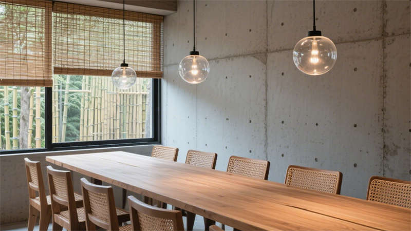 本设计以自然与现代的融合为核心,延续了原木、玻璃与清水混凝土的材质语言,将合肥地域的温润气质与侘寂美学相呼应,打造出兼具舒适感与艺术感的居住场景。公共区域中,浅橡木色的柜体与天花线条连贯延伸,搭配通透的玻璃隔断,让光线自由穿梭,模糊室内外的边界;清水混凝土墙面保留了原始肌理,与苔藓绿的软装陈设形成柔和对比,传递出质朴而宁静的氛围。?
