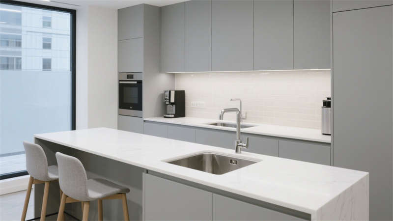室内设计延续整体风格,各空间既相互呼应又各具功能特色。入口区域注重第一印象营造,通过合理的空间布局和简约的装饰元素,传递出专业、整洁的氛围,引导人员自然进入办公区域。开放办公区以舒适高效为核心,考虑到人员交流与独立工作的需求,进行科学的区域划分,搭配柔和的灯光和舒适的办公家具,让整体环境既利于协作又能减少干扰。?