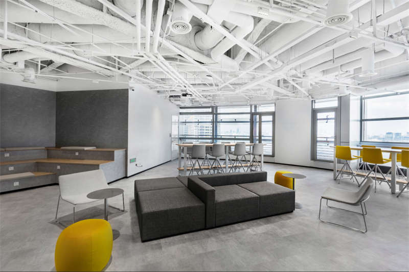 以方块切割空间,几何造型的演变、堆叠,创建出矩阵空间的实体形态。白色,灰色,明黄充斥,随意散落在空间中,看似不经意的堆砌,却是空间中不可忽视的点缀。