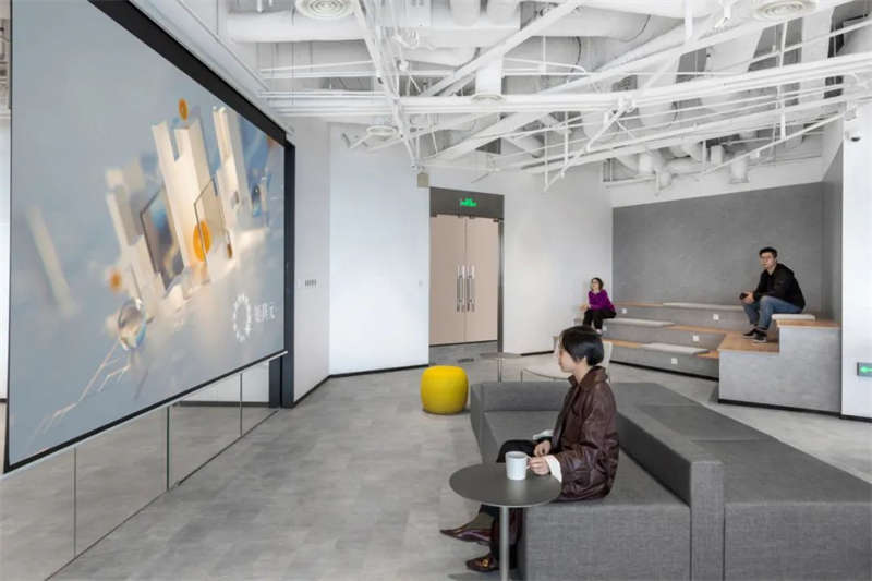 整个空间呈现出轻盈的姿态,大面积留白给予空间呼吸感,曲线流动的造型就像一根善于变化而纤细不惊的丝线,即将牵引出一次次关于未来的探索。