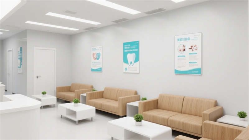 在视觉呈现上,以低饱和度的中性色为基础,搭配局部温润的软装元素,营造出专业且温和的氛围,缓解患者就诊时的紧张情绪。材质选择上,优先考虑易清洁、耐磨损的环保材料,兼顾实用性与健康需求。整体设计无冗余装饰,以简洁的形态承载功能,让空间既符合口腔医疗的专业属性,又传递出舒适、安心的体验感。